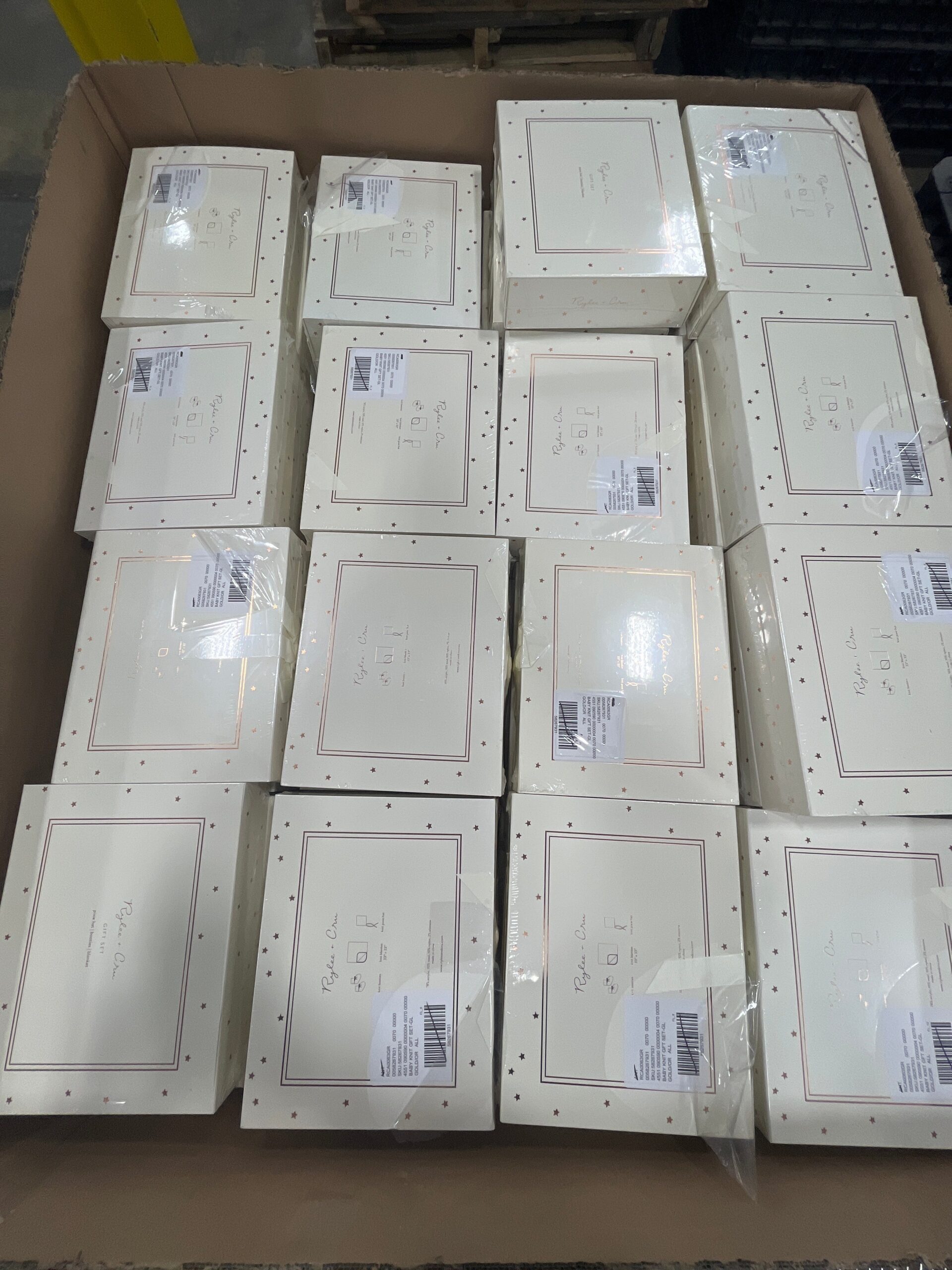 Lot consisting of new name-brand knit baby gift sets. See linked manifest for more information.Our offerings are inspected before they are packed. Our products come directly from manufacturers or retail stores. We will always provide you with as much information on the offerings as we can. Photos and descriptions are a representation of the total lot offered. Pallet contents may vary slightly in quantity and overall mix.